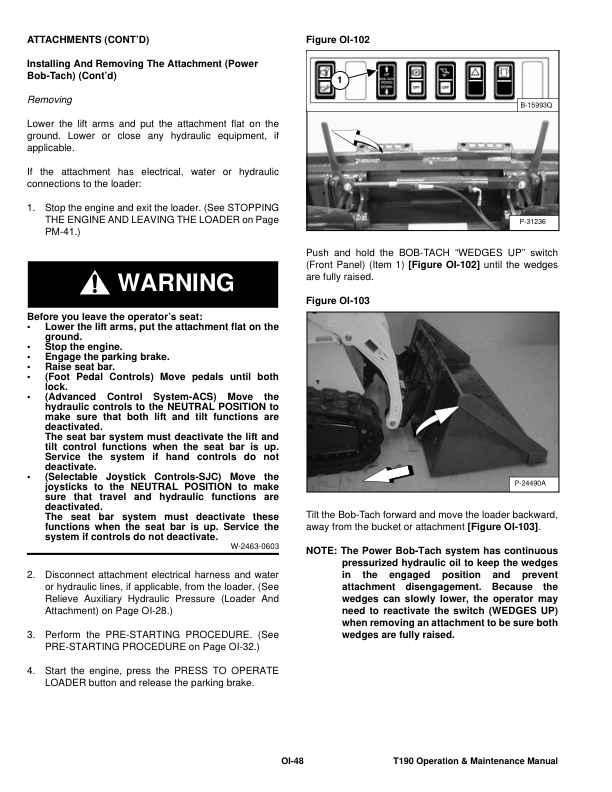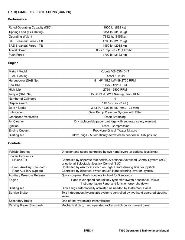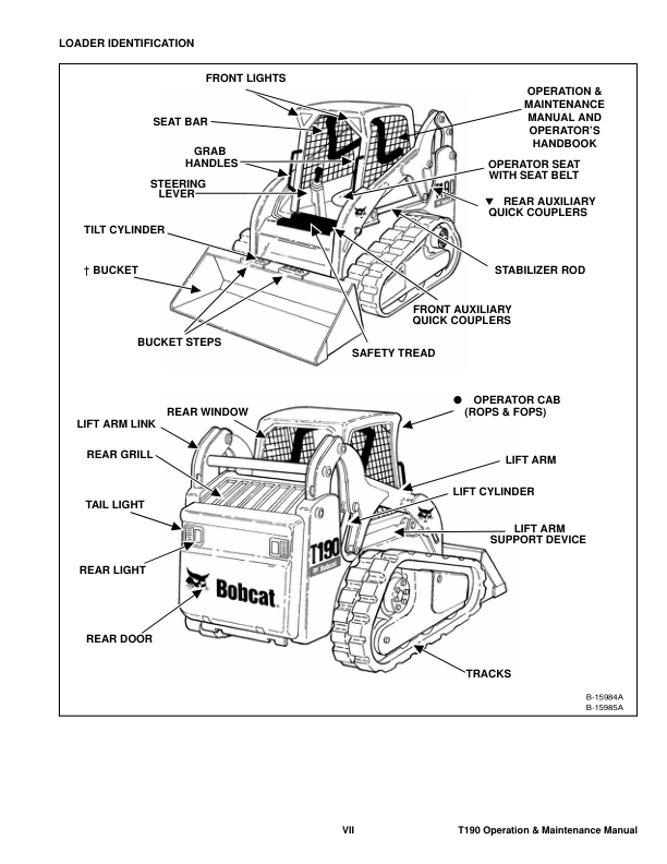 Bobcat T190 Compact Track Loader Operation and Maintenance Manual 5316 5317 2006