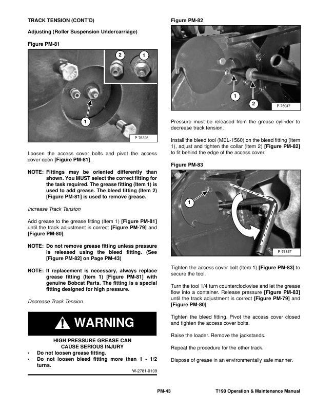 Bobcat T190 Compact Track Loader Operation and Maintenance Manual A3LN A3LP 2009