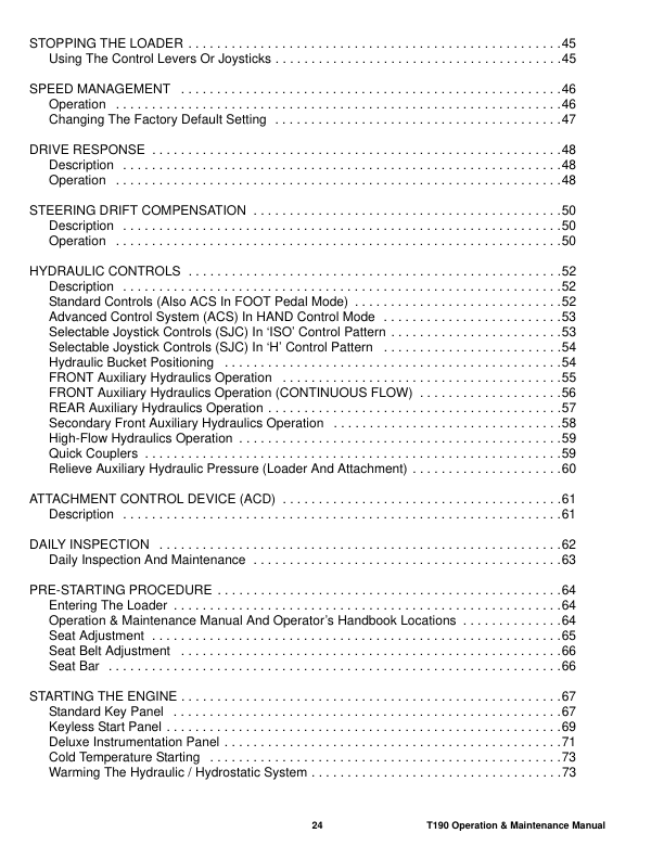Bobcat T190 Compact Track Loader Operation and Maintenance Manual A3LN3 2010