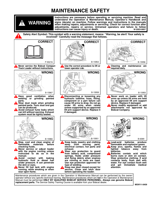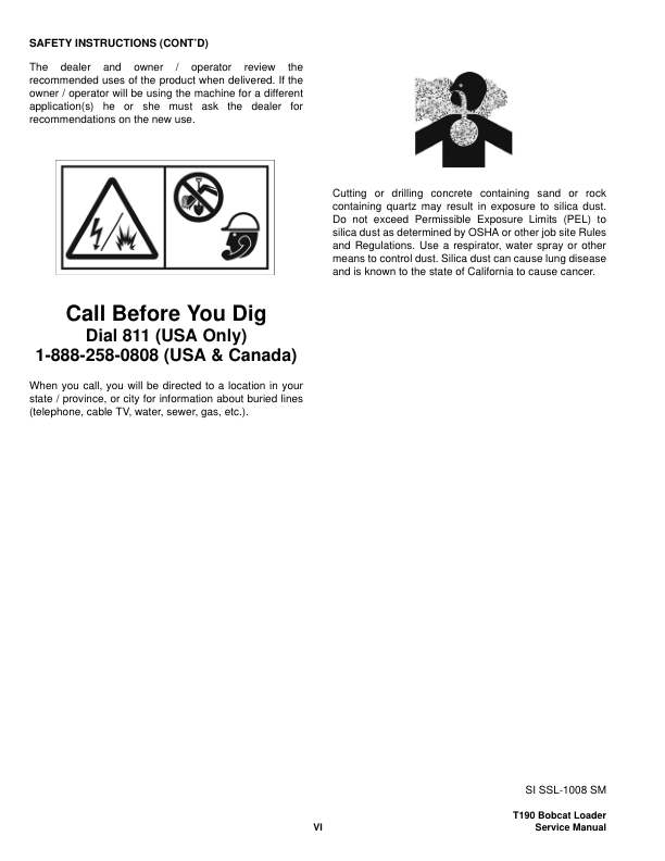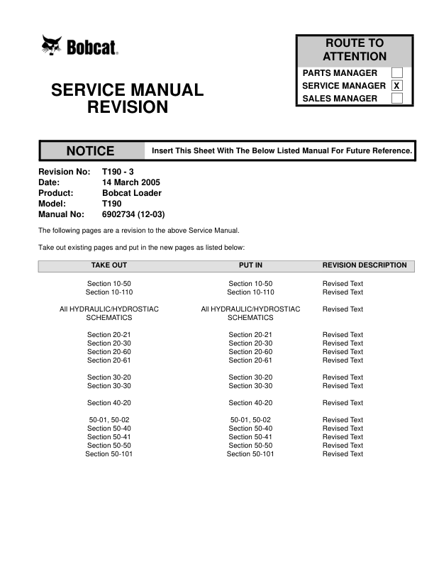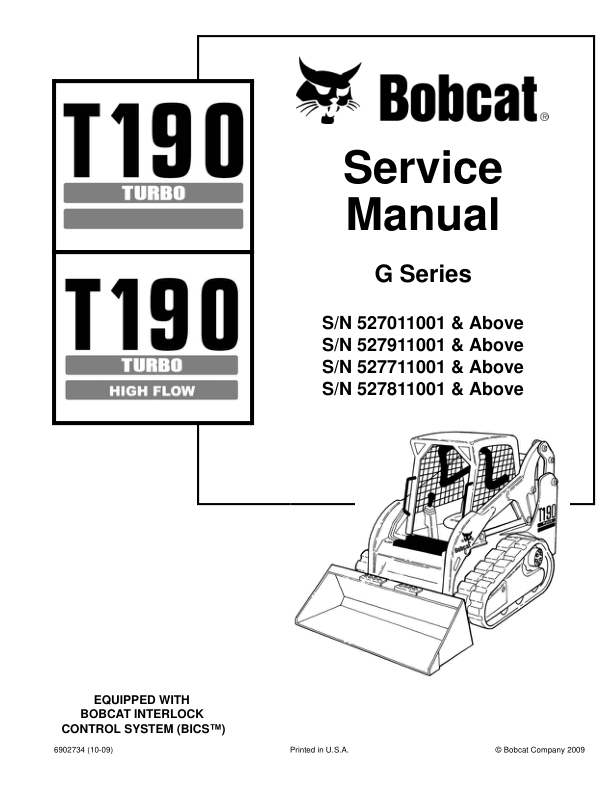 Bobcat T190 Compact Track Loader Service Manual 527011001 527711001 527811001 527911001