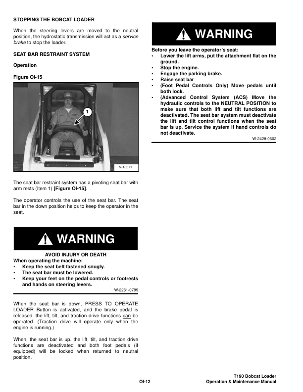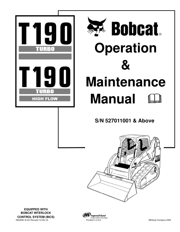 Bobcat T190 Turbo High Flow Compact Track Loader Operation and Maintenance Manual 5270