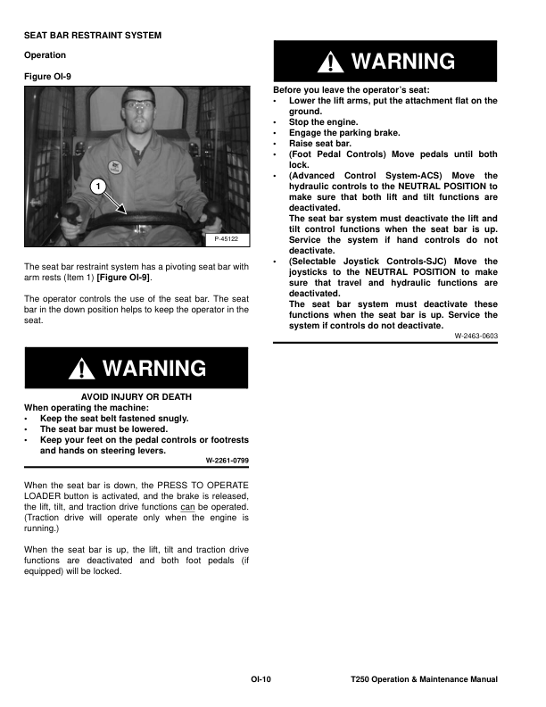 Bobcat T250 Compact Track Loader Operation and Maintenance Manual 5318 5319