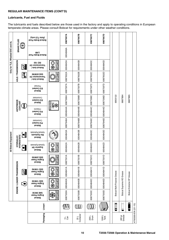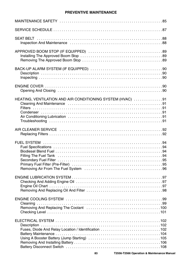 Bobcat T2556 T2566 Telescopic Handler Operation and Maintenance Manual A8FR A8G3