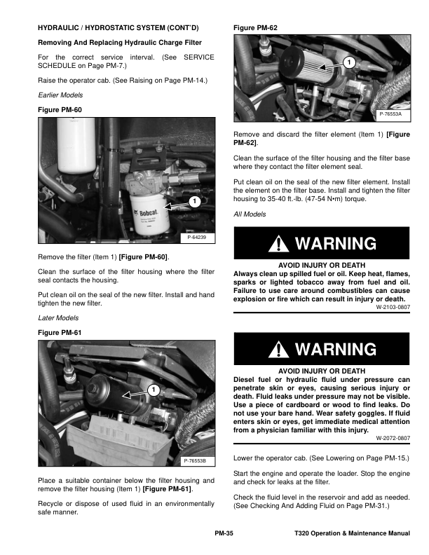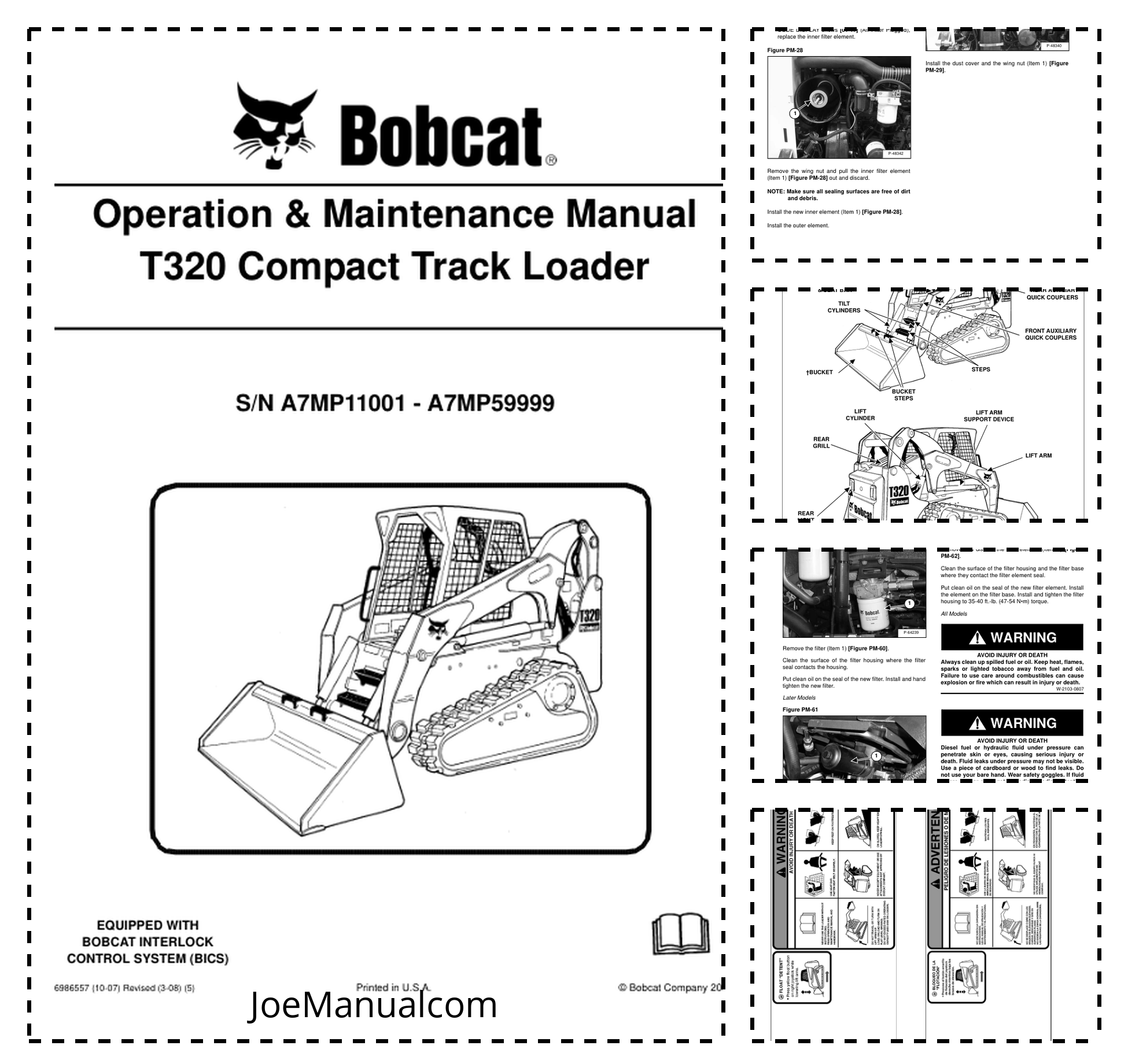 Bobcat T320 Compact Track Loader Operation and Maintenance Manual A7MP11001 A7MP59999