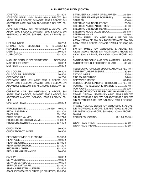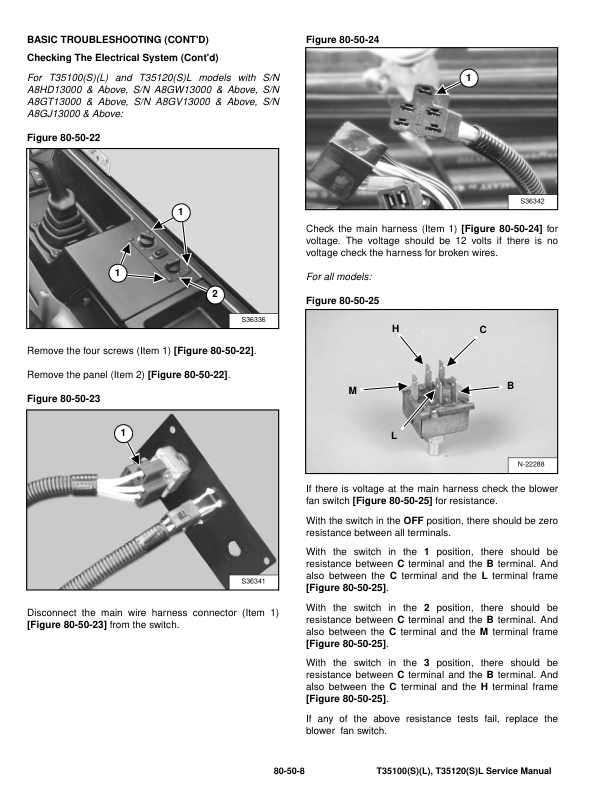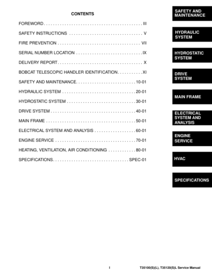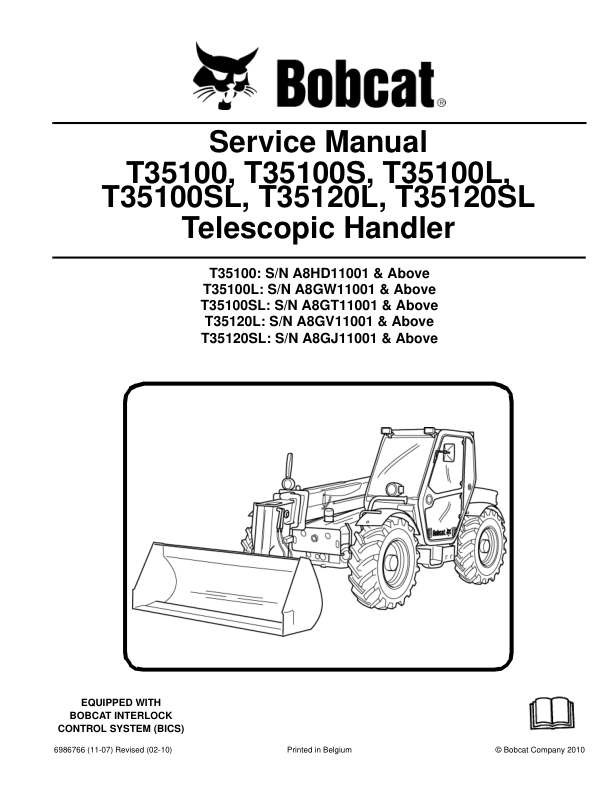 Bobcat T35100 T35100L T35100SL T35120L T35120SL Telescopic Handler Service Manual