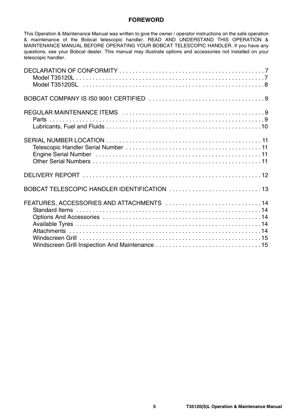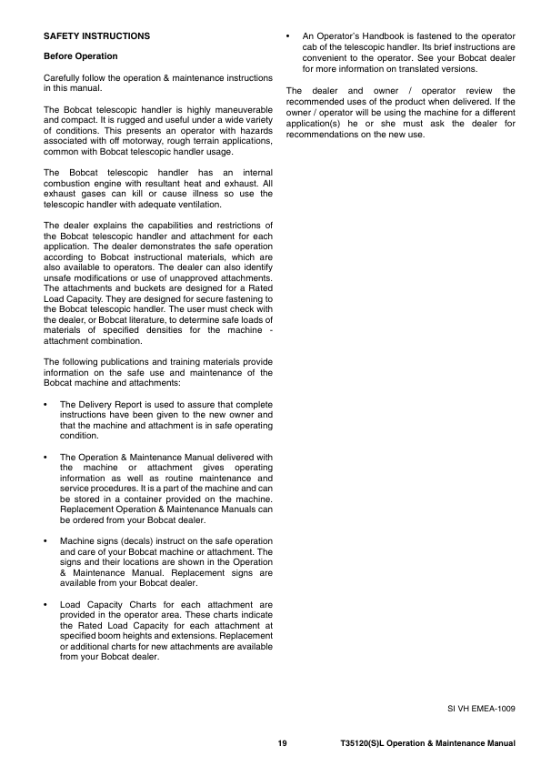 Bobcat T35120 Telescopic Handler Operation and Maintenance Manual A8GV A8GJ