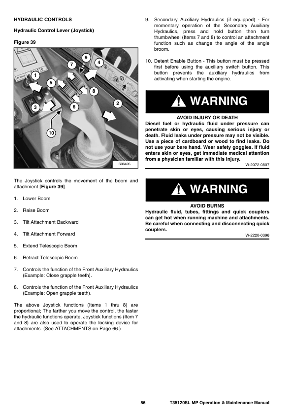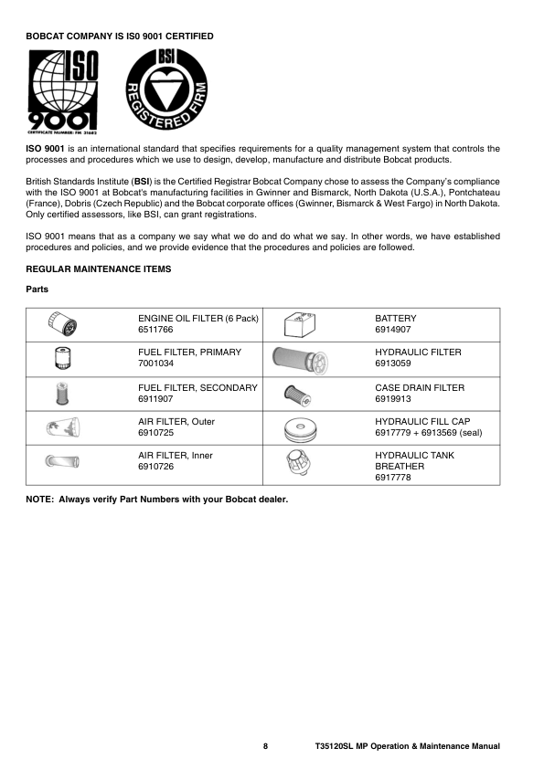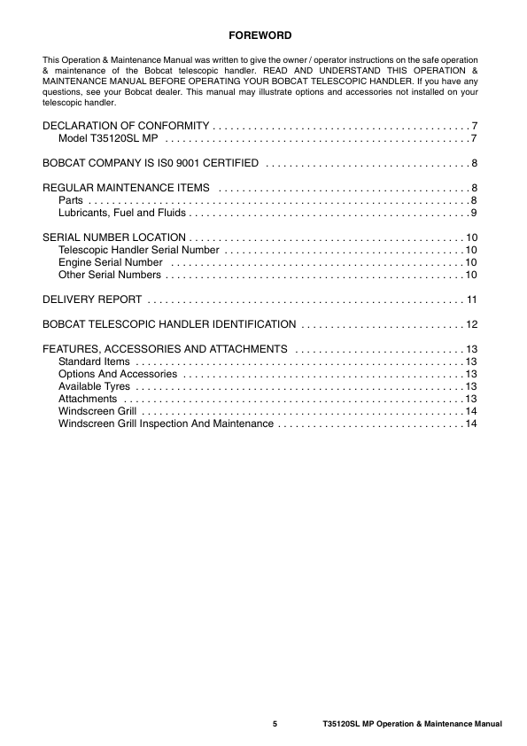 Bobcat T35120SL Telescopic Handler Operation and Maintenance Manual A8GS