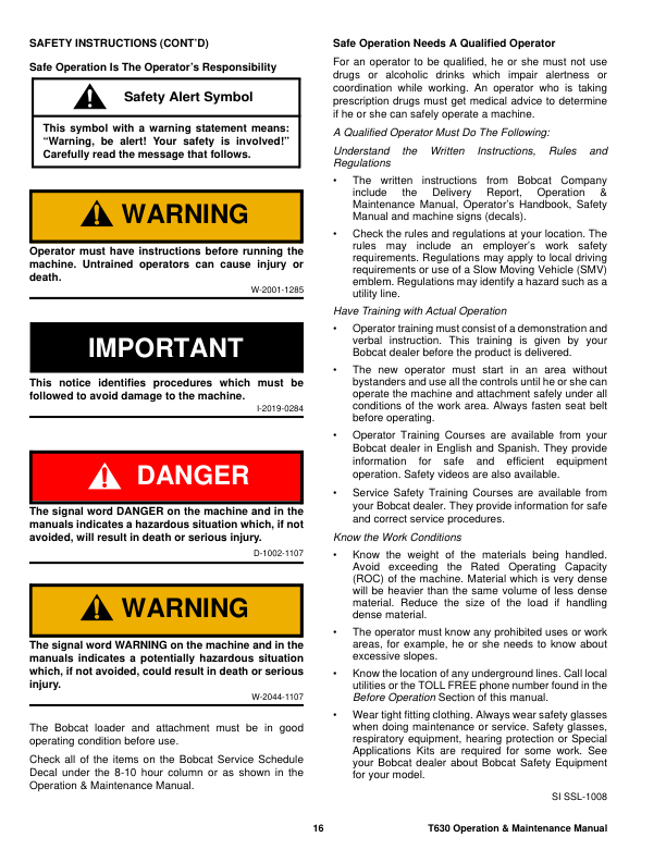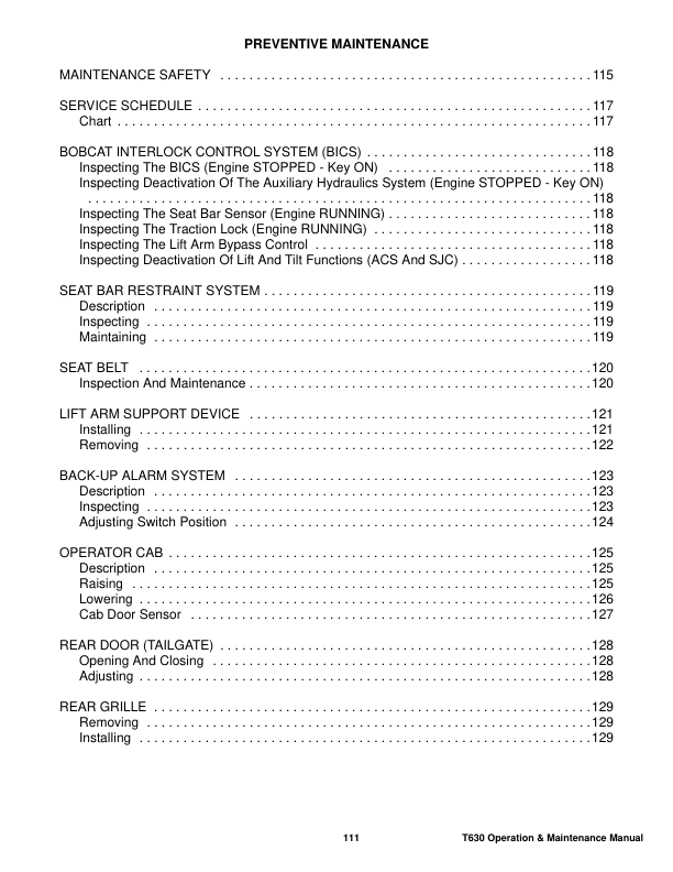 Bobcat T630 Compact Track Loader Operation and Maintenance Manual A7PU