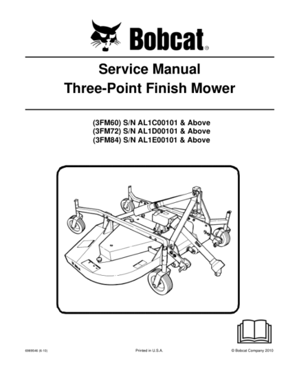 Bobcat Three Point Finish Mower Implement Service Manual AL1C00101