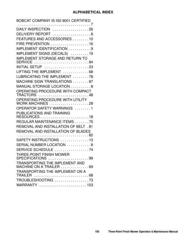 Bobcat Three Point Finish Mower Operation and Maintenance Manual