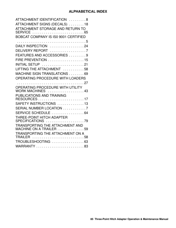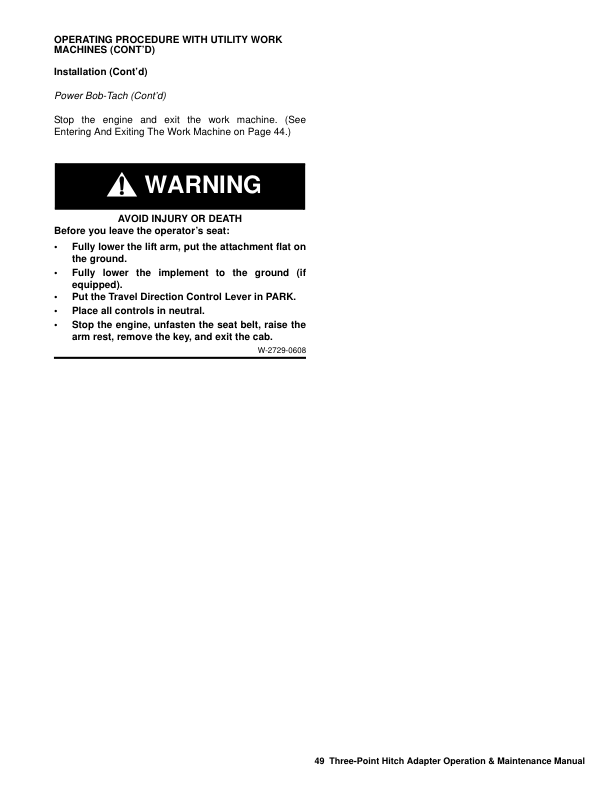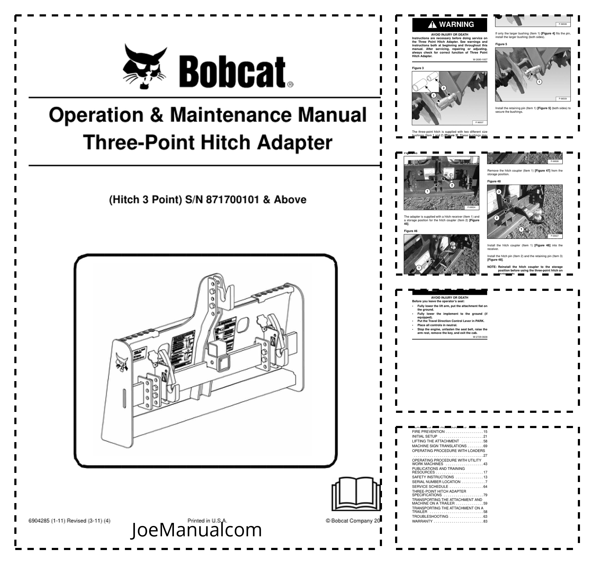Bobcat Three-Point Hitch Adapter Operation and Maintenance Manual