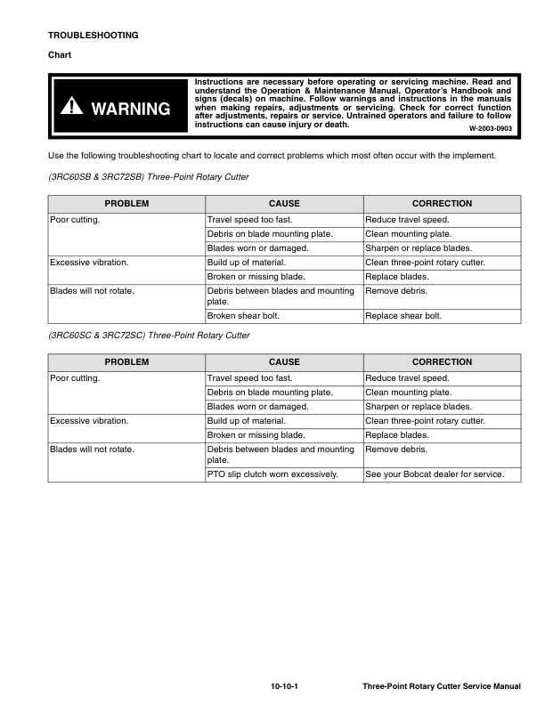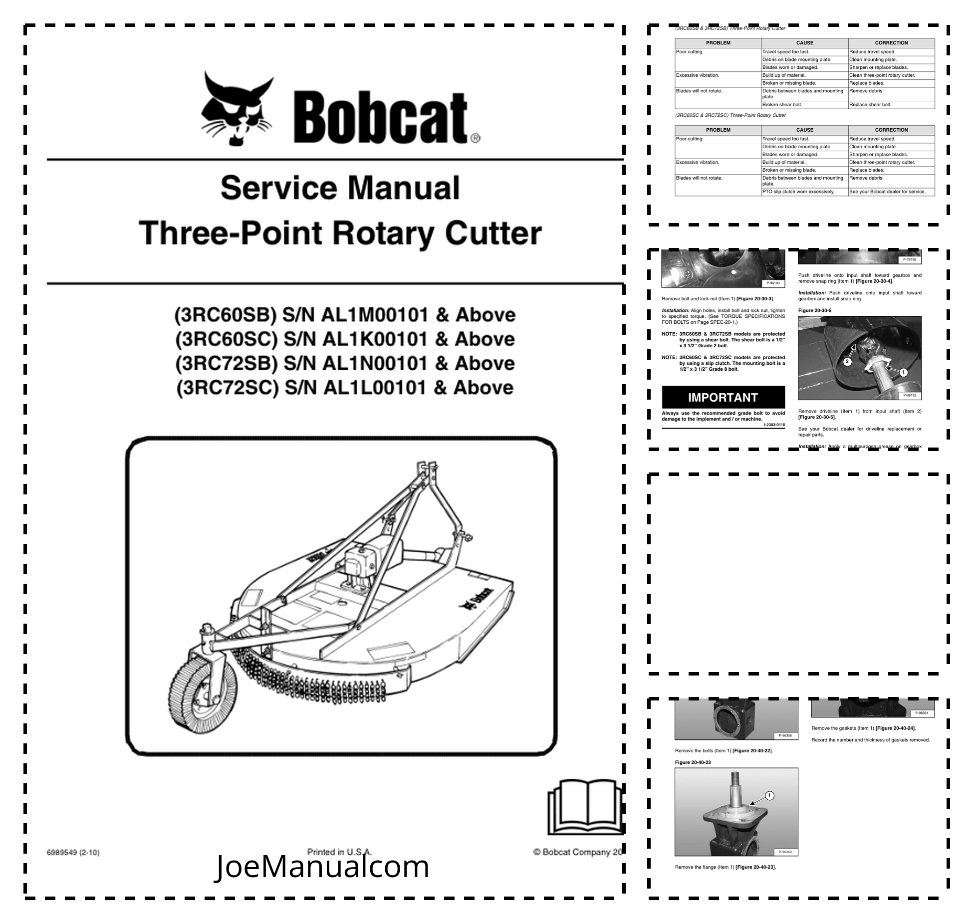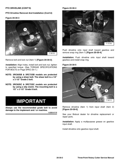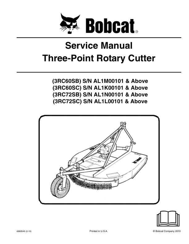 Bobcat Three Point Rotary Cutter Implement Service Manual AL1M AL1K AL1N AL1L