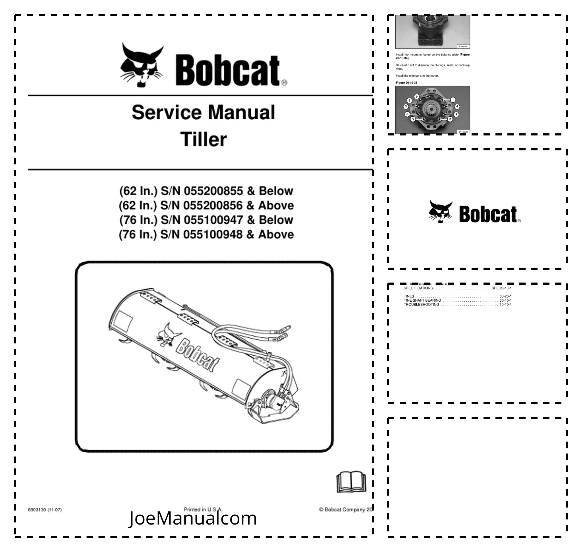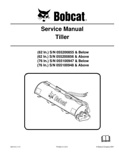Bobcat Tiller Implement Service Manual 055200855 055200856 055100947 055100948