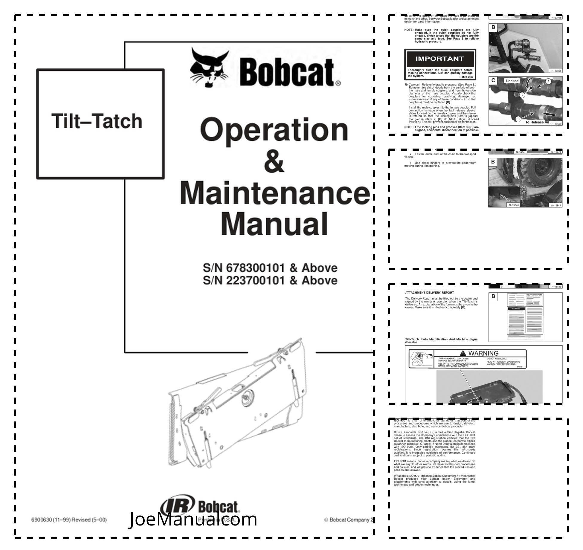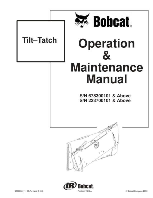 Bobcat Tilt-Tatch Operation and Maintenance Manual 6783 2237 This manual is an essential resource for operators and maintenance personnel of the Bobcat Tilt-Tatch equipment models 6783 and 2237 providing comprehensive guidance on proper operation maintenance and safety procedures to ensure optimal performance and longevity of the machine The document covers detailed step-by-step instructions for daily use routine inspections lubrication and servicing as well as troubleshooting common issues and identifying replacement parts It includes technical specifications safety guidelines and best practices for handling and maintaining the equipment to comply with manufacturer standards and regulatory requirements The manual is designed to support efficient and safe operation while minimizing downtime and maximizing productivity through clear explanations and visual aids for both new and experienced users