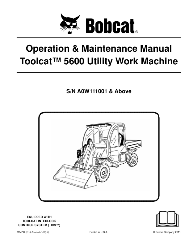 Bobcat Toolcat 5600 Utility Work Machine Operation and Maintenance Manual A0W111001