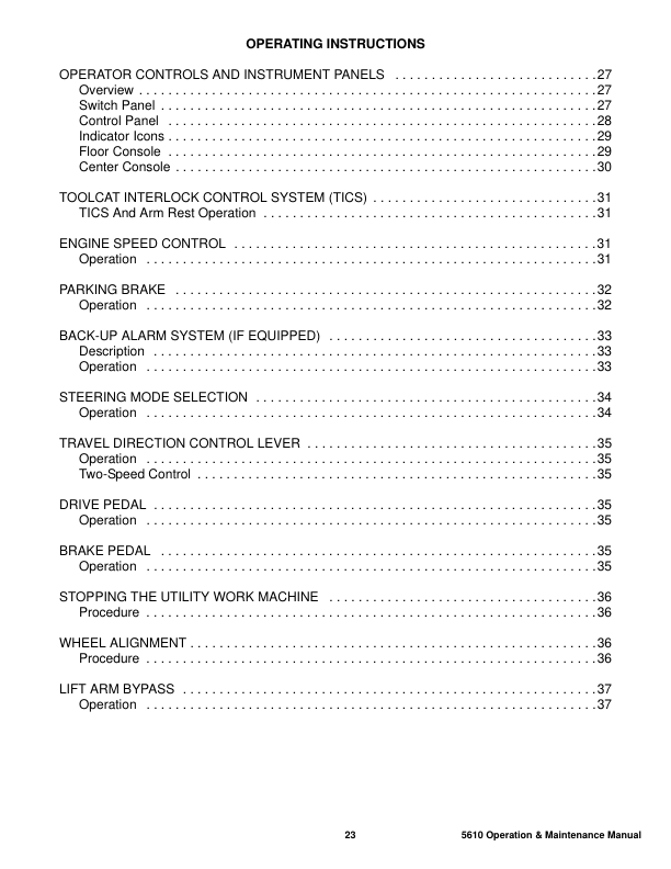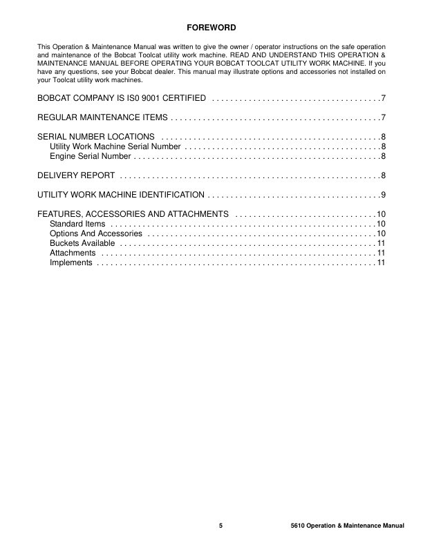Bobcat Toolcat 5610 Utility Work Machine Operation and Maintenance Manual APFB