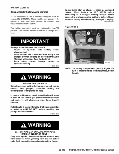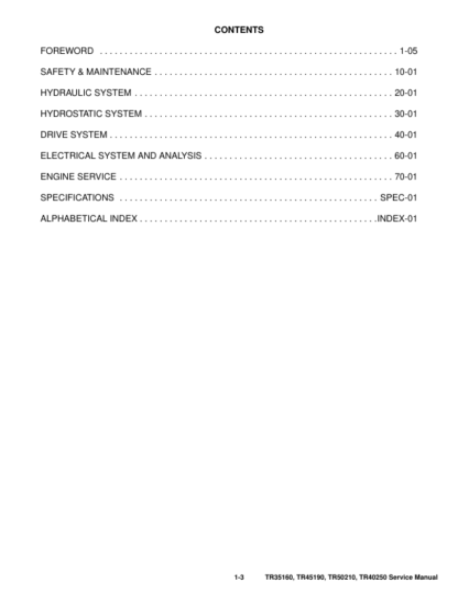 Bobcat TR35160 TR45190 TR50210 TR40250 Telescopic Handler Service Manual