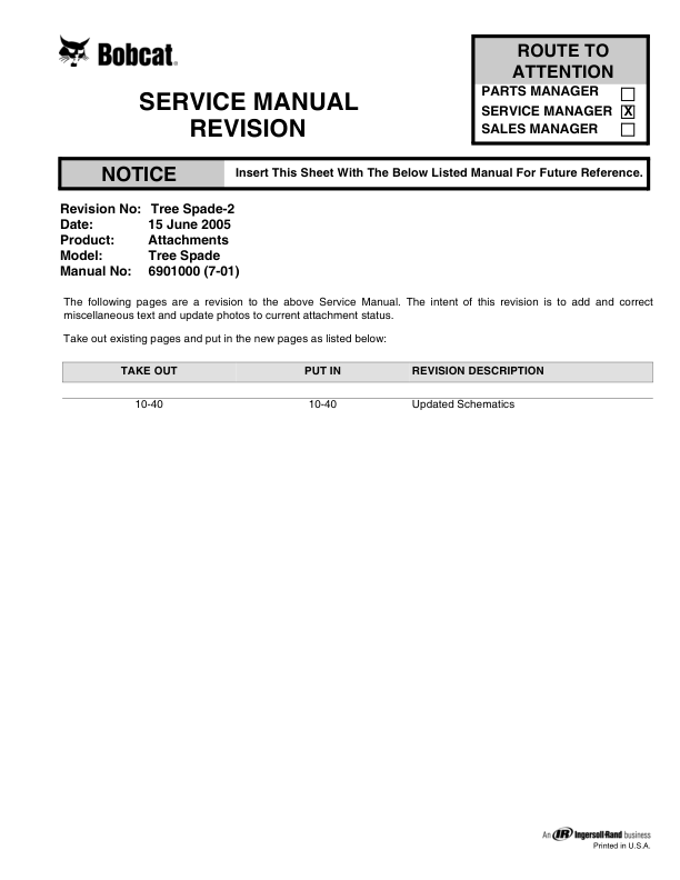 Bobcat Tree Spade Implement Service Manual