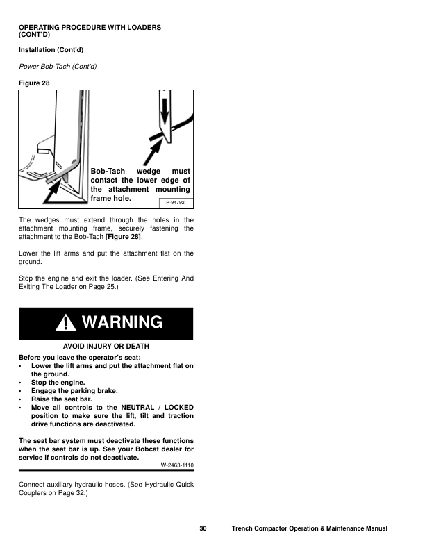 Bobcat Trench Compactor Operation and Maintenance Manual 2233