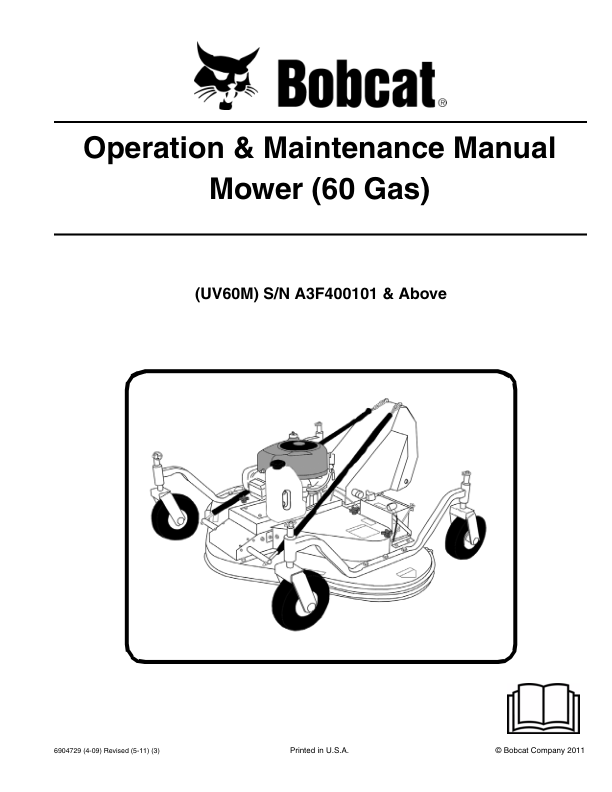 Bobcat UV60M Mower 60 Gas Operation and Maintenance Manual A3F400101