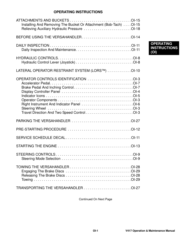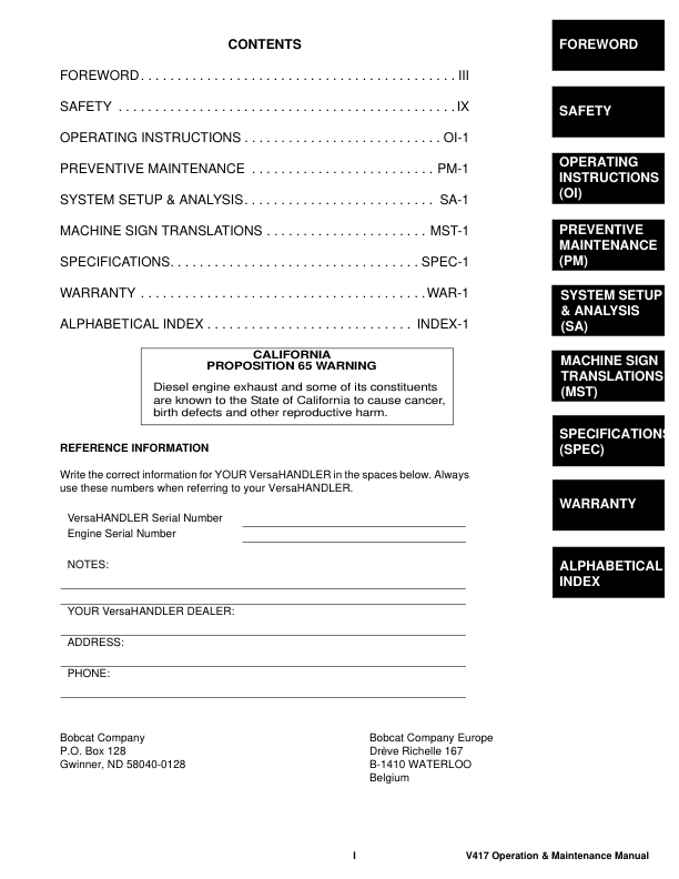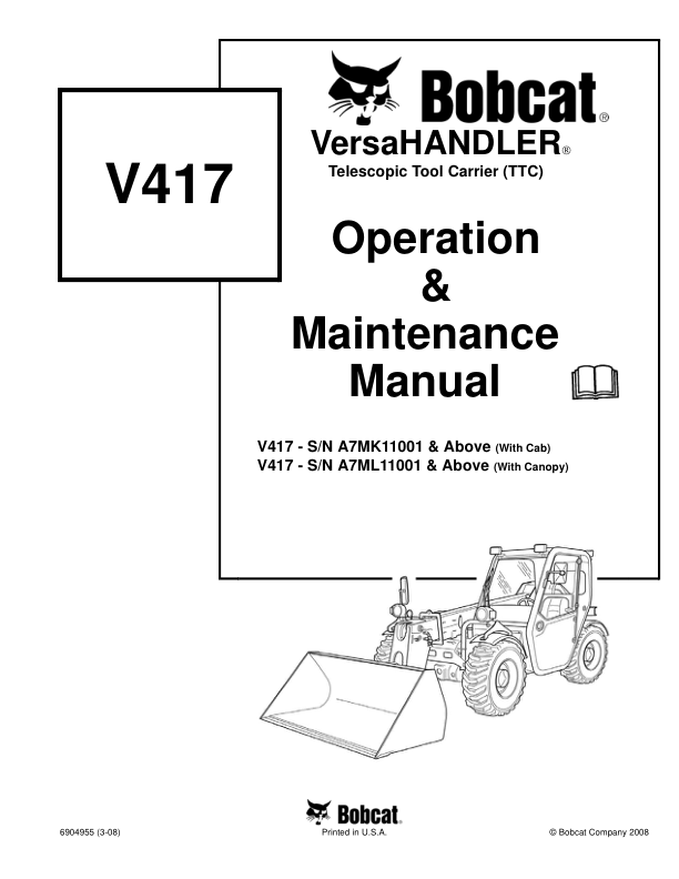 Bobcat V417 Telescopic Tool Carrier Operation and Maintenance Manual A7MK A7ML