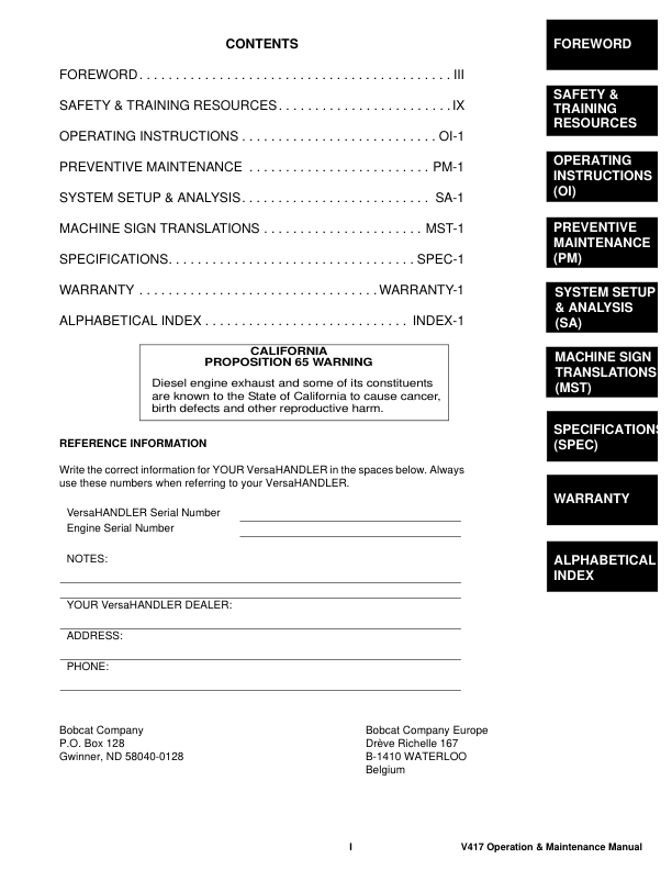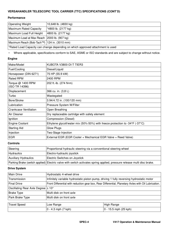 Bobcat V417 Telescopic Tool Carrier Operation and Maintenance Manual AC1C AC1D 2008