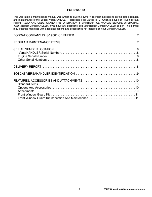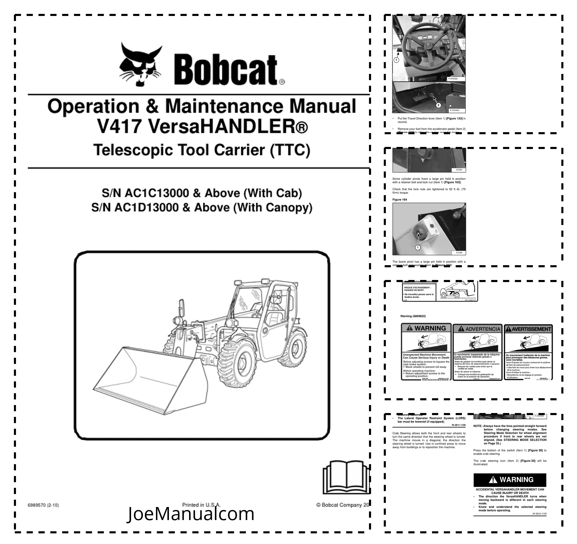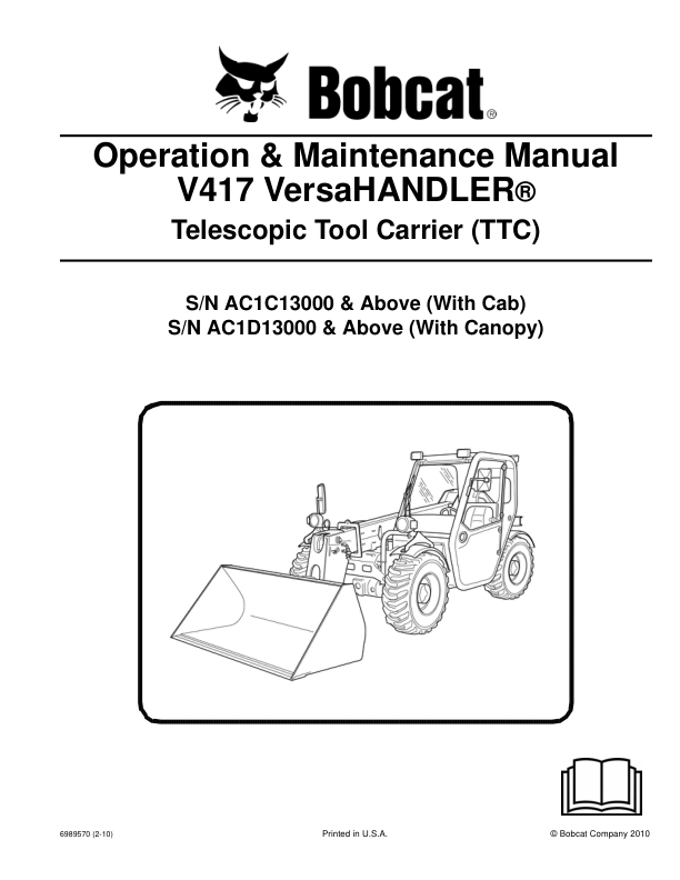 Bobcat V417 Telescopic Tool Carrier Operation and Maintenance Manual AC1C AC1D 2010