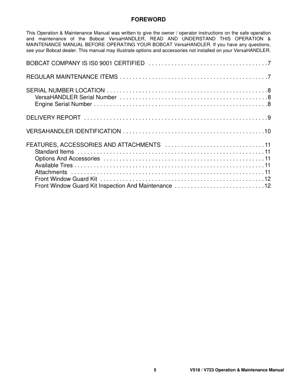 Manual Type: Operation and Maintenance Manual