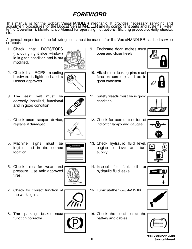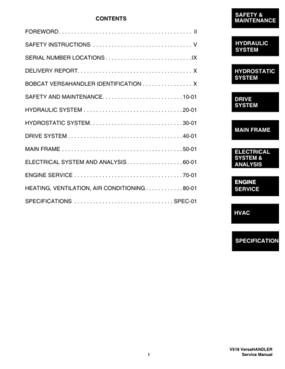 Bobcat V518 Versahandler Service Manual SN 3670 3673
