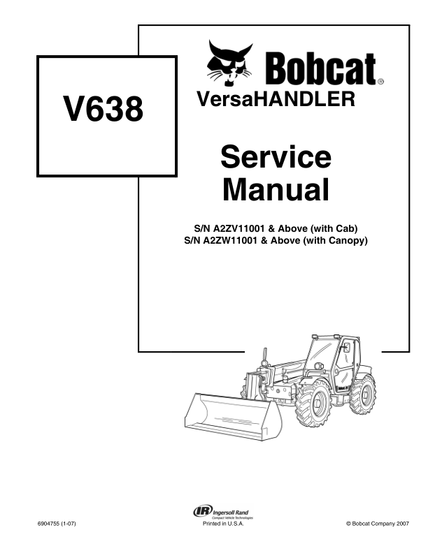 Bobcat V638 VersaHANDLER Service Manual A2ZV11001