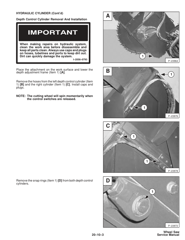 Bobcat Wheel Saw Implement Service Manual 991800101 991900101 2001