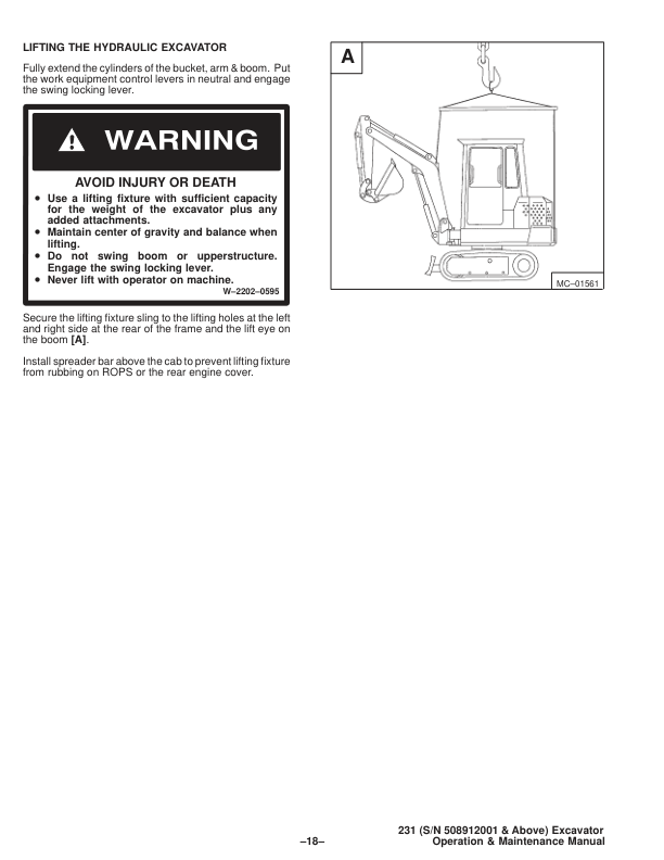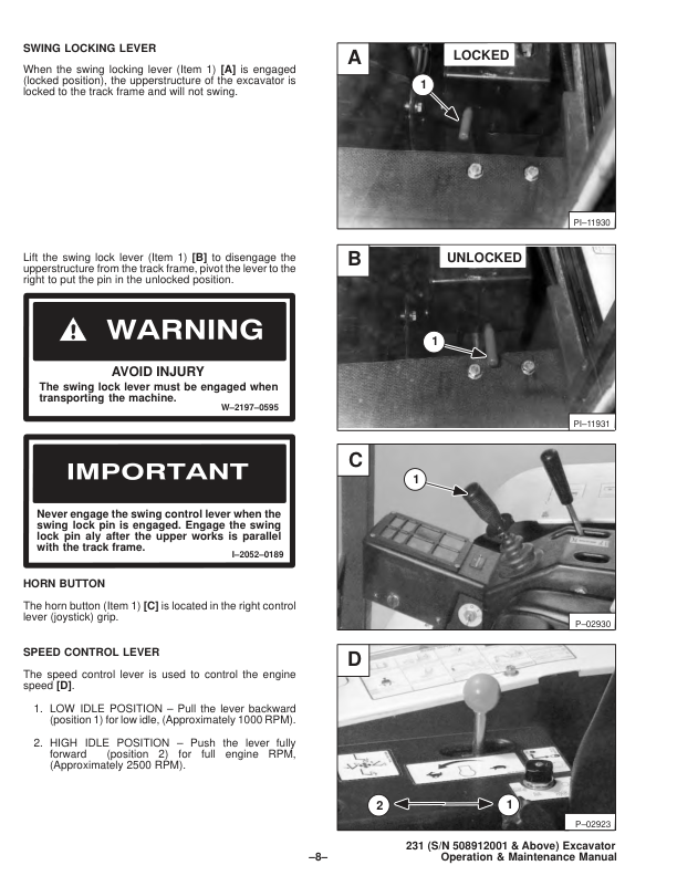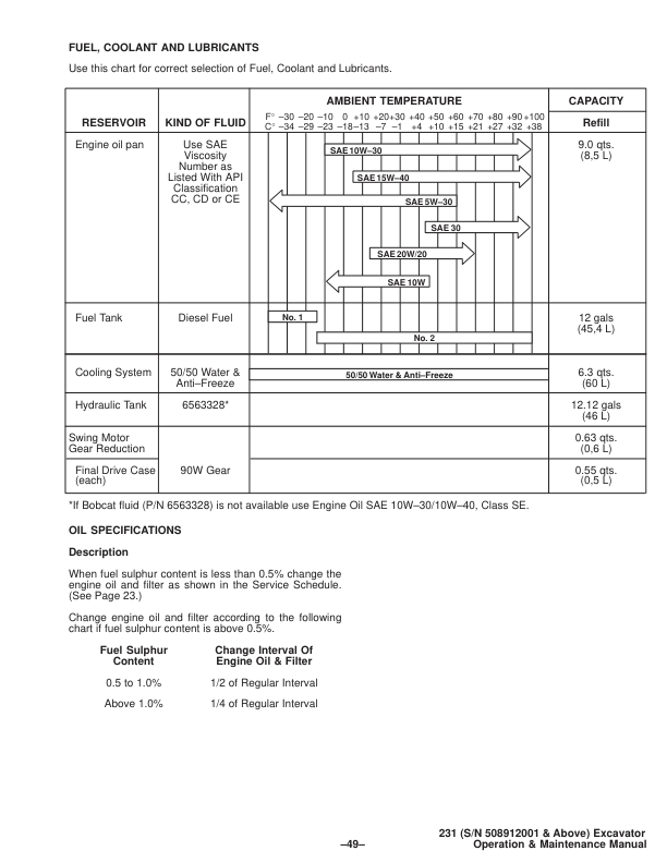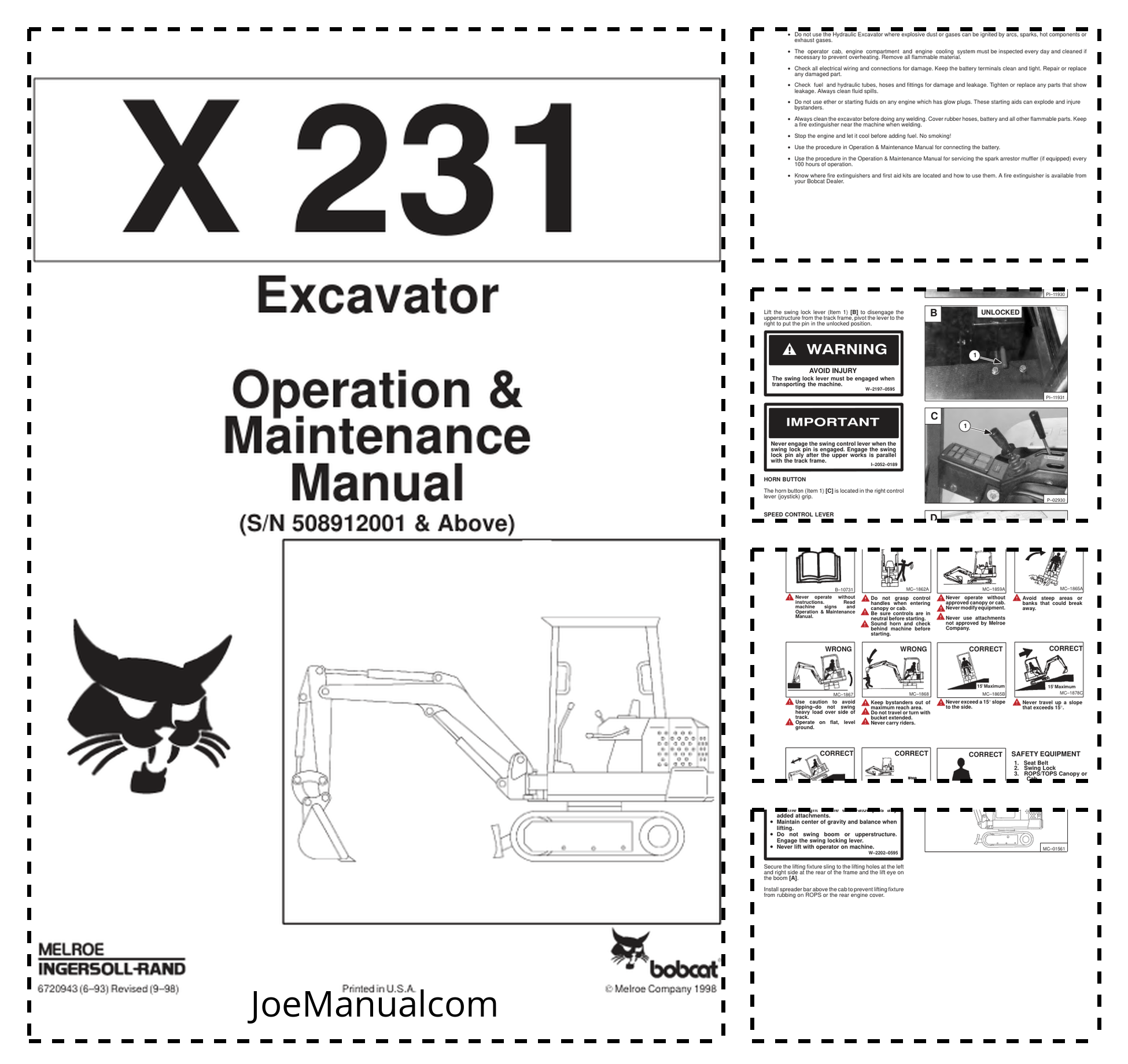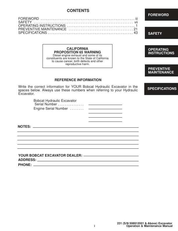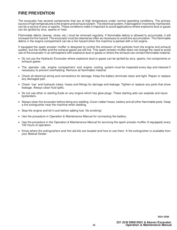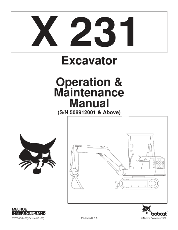 Bobcat X231 Excavator Operation and Maintenance Manual 508912001