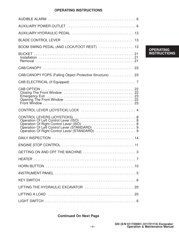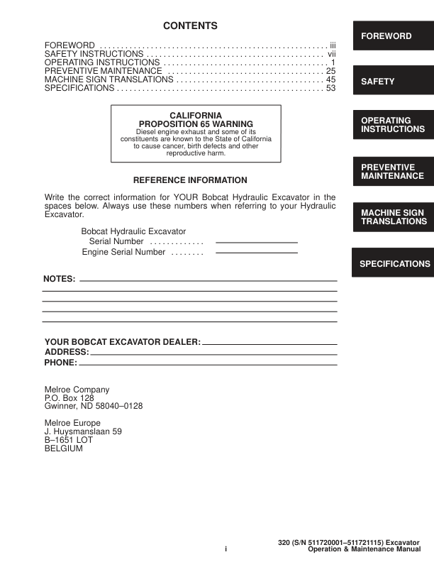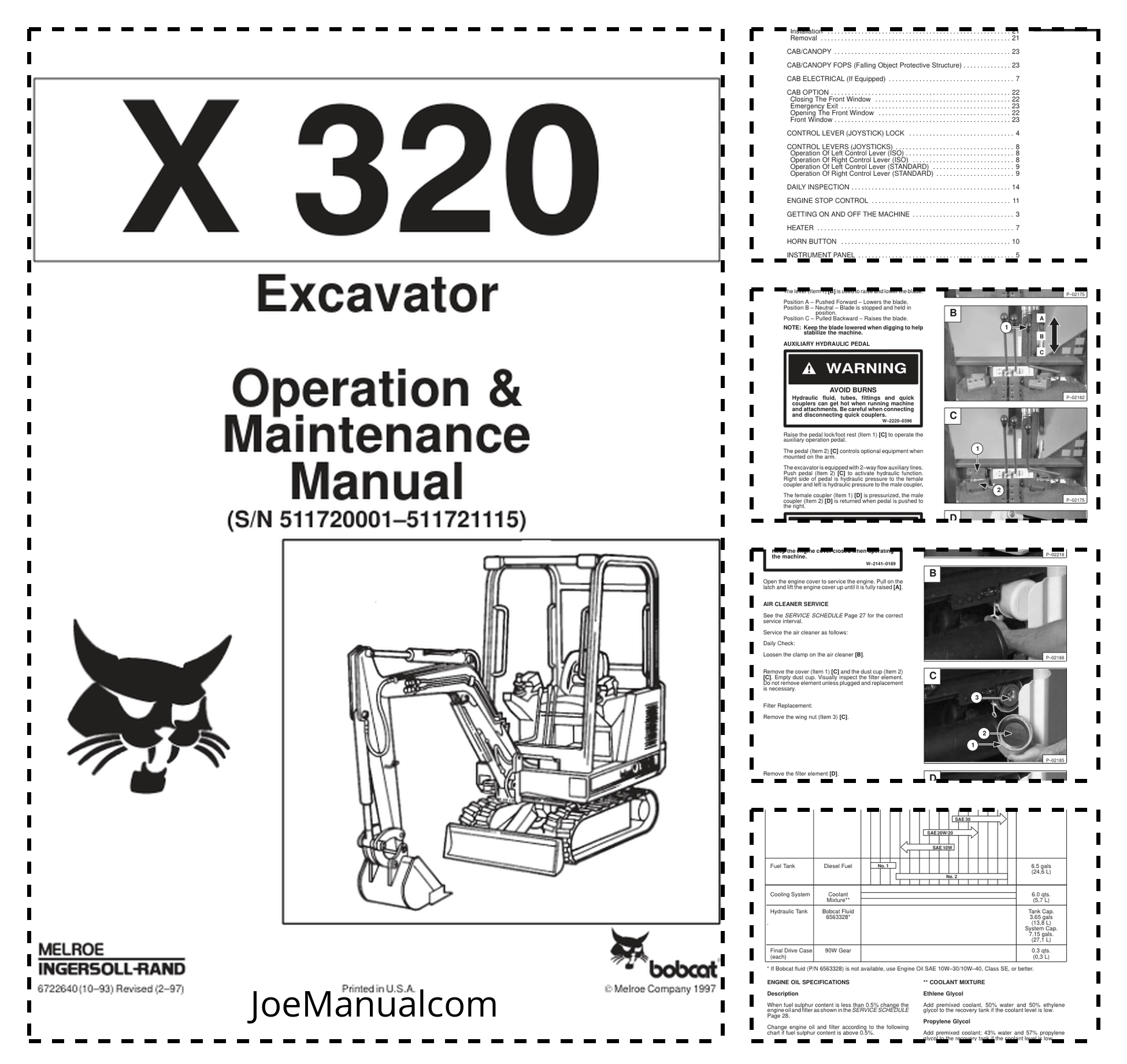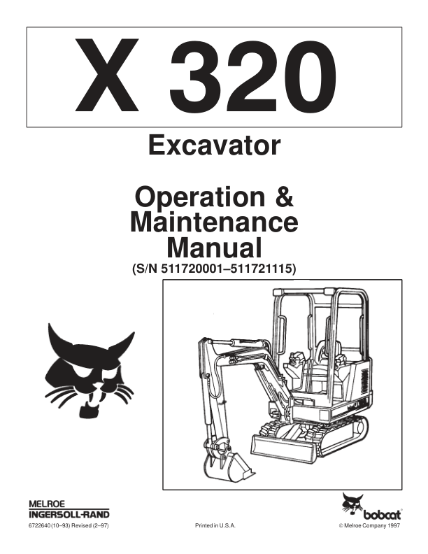 Bobcat X320 Excavator Operation and Maintenance Manual 511720001