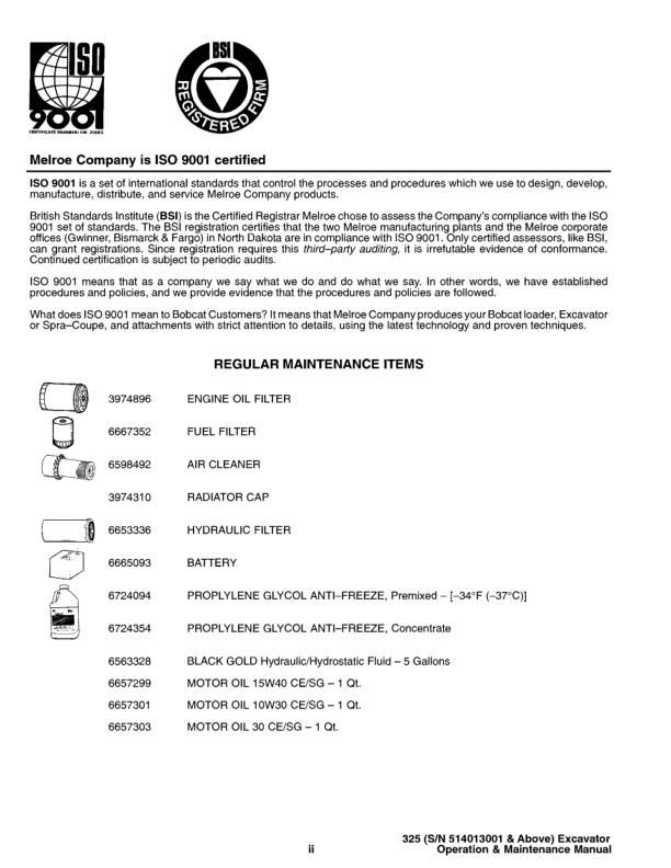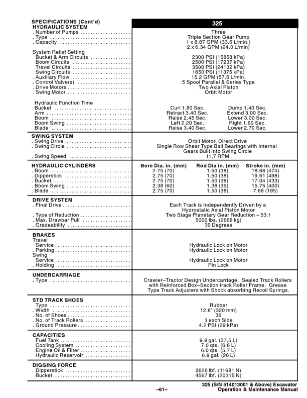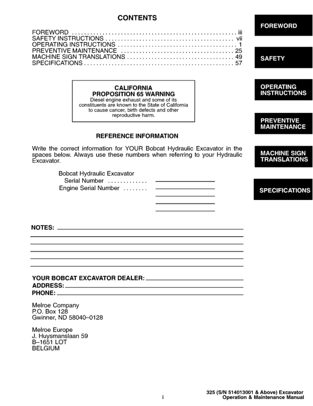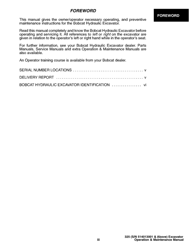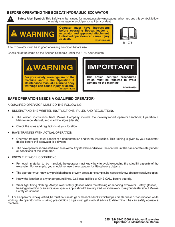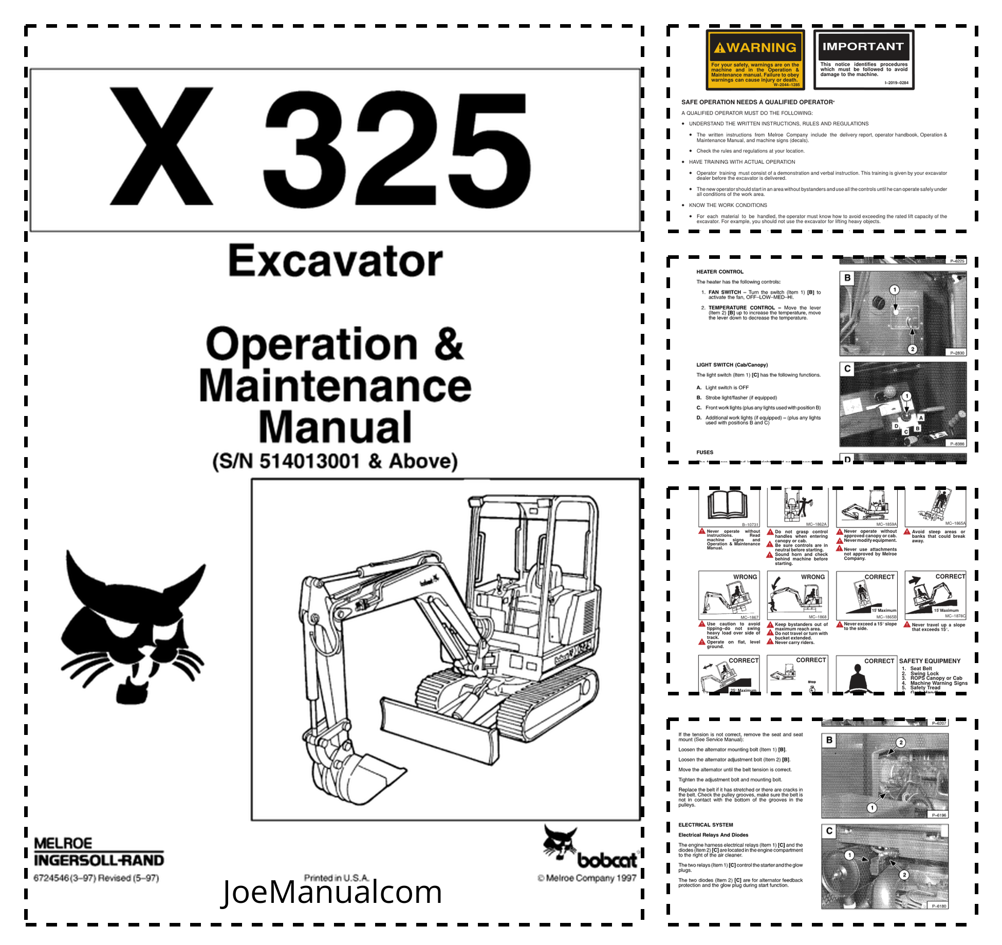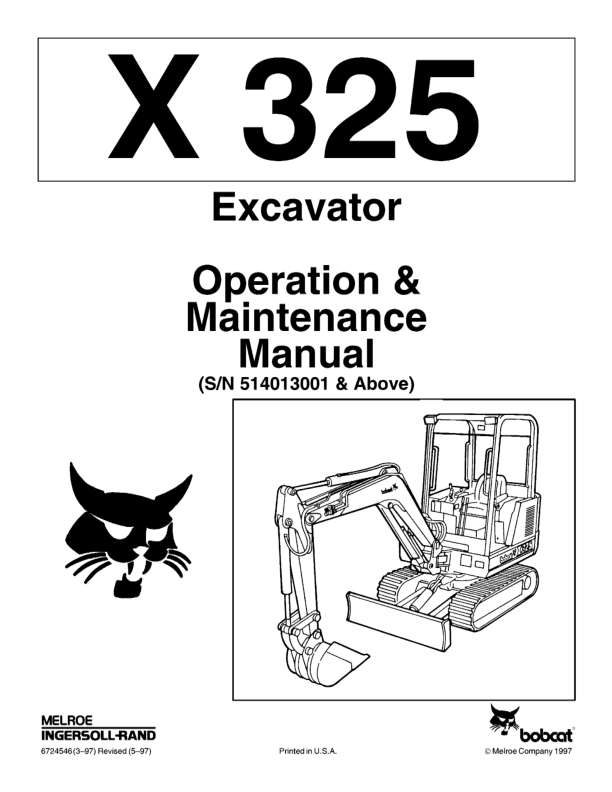 Bobcat X325 Excavator Operation and Maintenance Manual 514013001