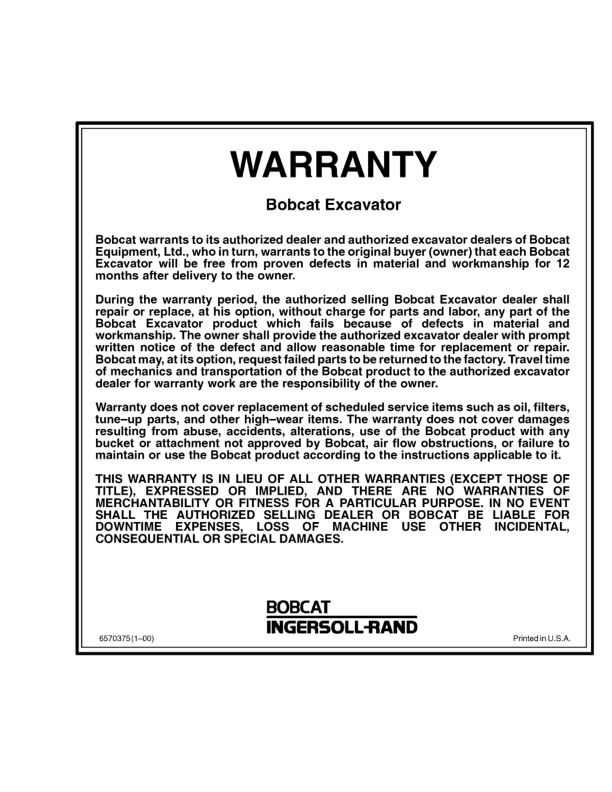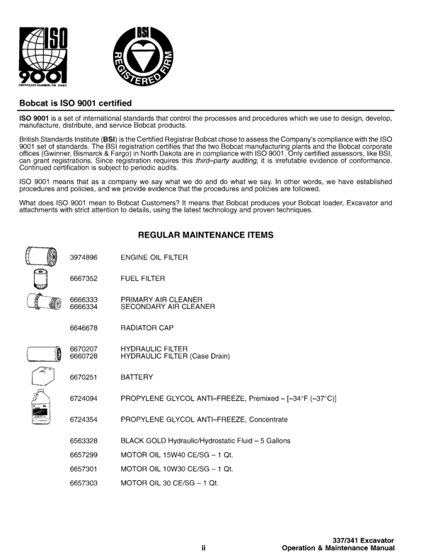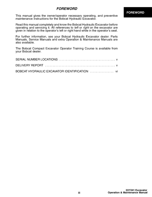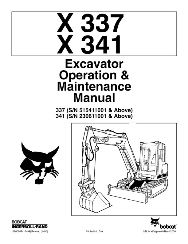 Bobcat X337 X341 Excavator Operation and Maintenance Manual 5154 2306