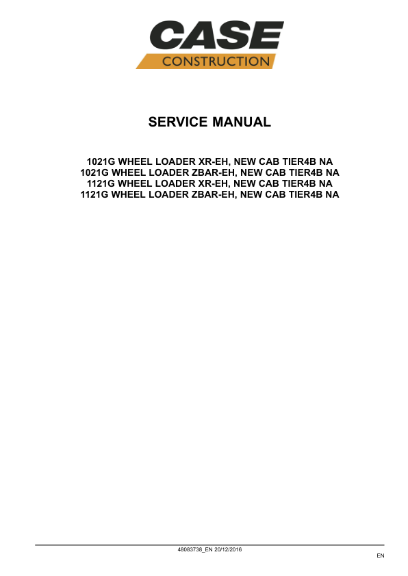 CASE 1021G 1121G Tier 4B Wheel Loader Service Manual 48083738