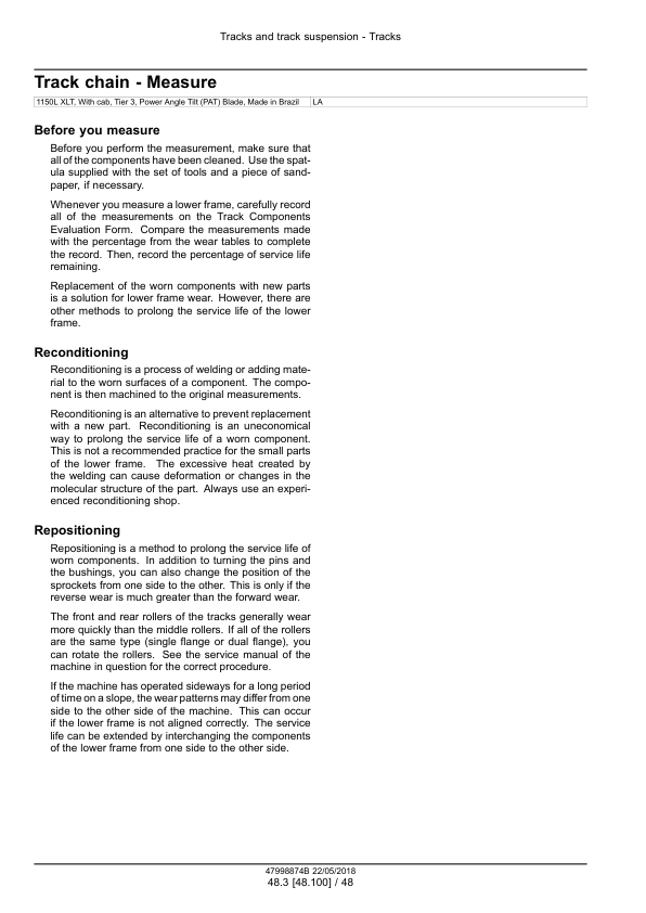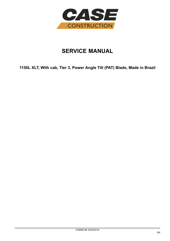 CASE 1150L Crawler Dozer Service Manual 47998874B Made in Brazil