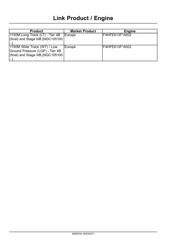 1150M Wide Track (WT) / Low Ground Pressure (LGP) – Tier 4B (final) and Stage IIIB [NGC105100 – ]