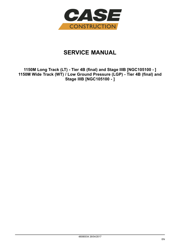 CASE 1150M Stage IIIB Crawler Dozer Service Manual 48080034
