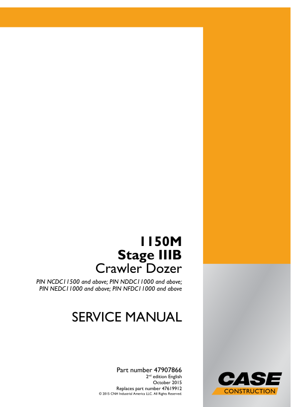 CASE 1150M Stage IIIB Crawler Dozer Service Manual PIN NCDC NDDC NEDC NFDC