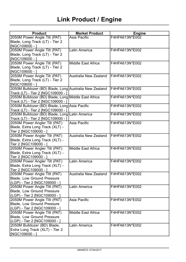 2050M Bulldozer (BD) Blade Long Track (LT) – Tier 2 [NGC109000 – ]