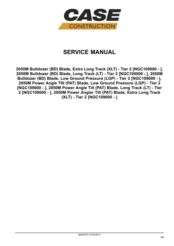 CASE 2050M Tier 2 Crawler Dozer Service Manual PIN NGC109000 and Above