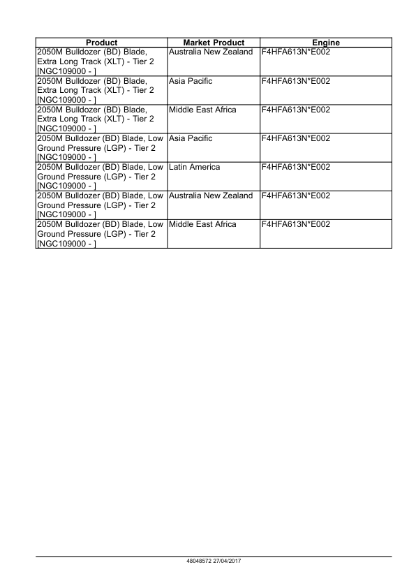 2050M Bulldozer (BD) Blade Extra Long Track (XLT) – Tier 2 [NGC109000 – ]