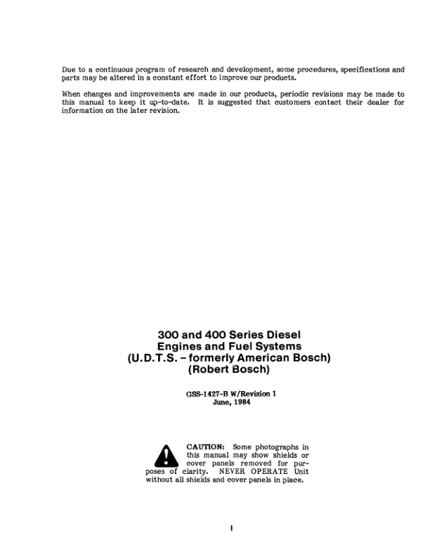 CASE 300 and 400 Series Diesel Engines and Fuel Systems Service Manual GSS1427B