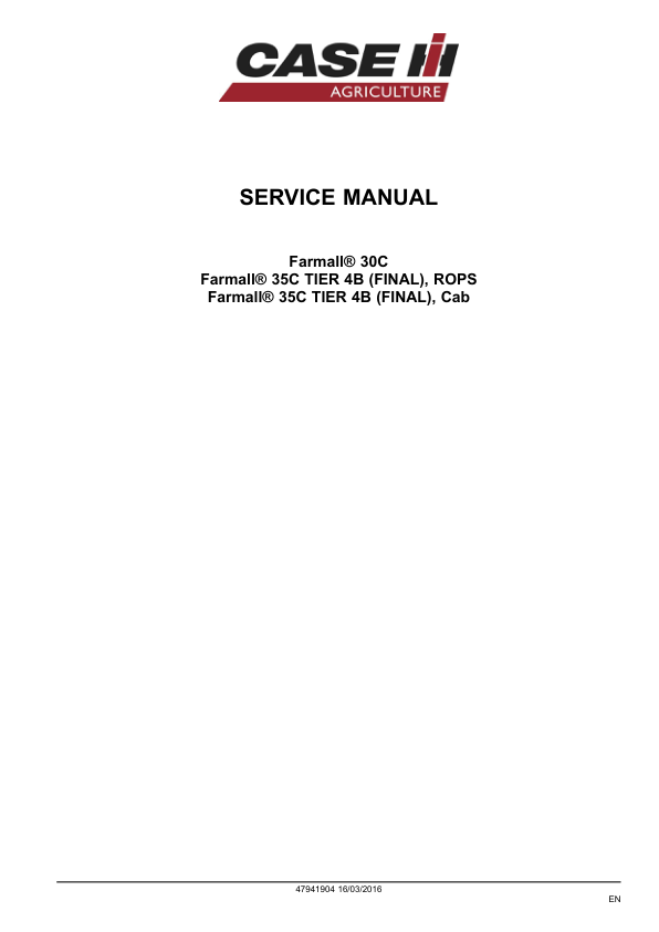 CASE 30C 35C Tier 4B Compact Tractor Service Manual NA