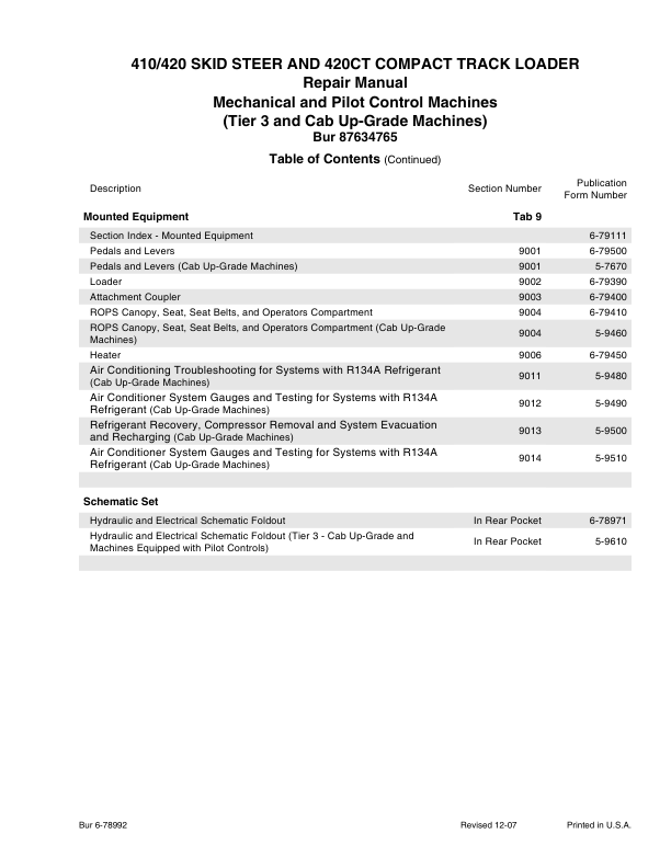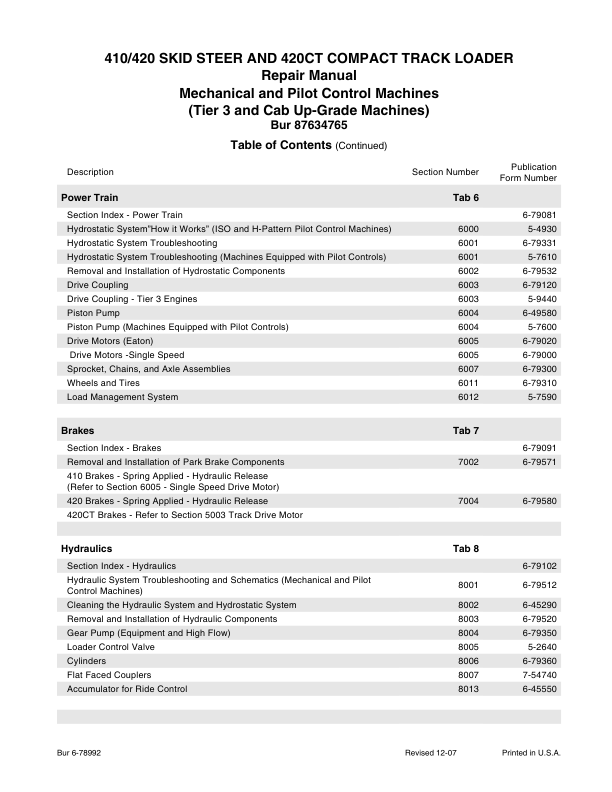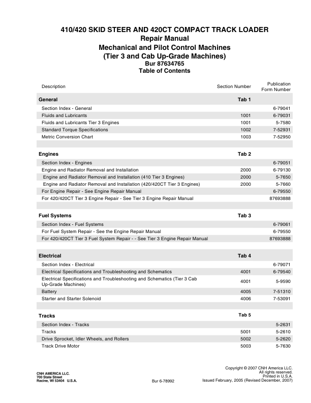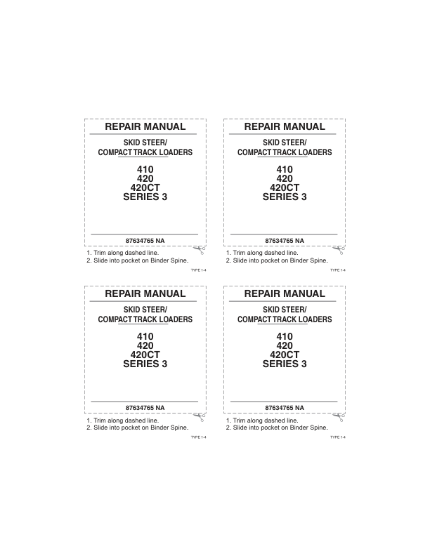 CASE 410 420 420 CT Series 3 Skid Steer Compact Track Loader Service Manual 87634765NA