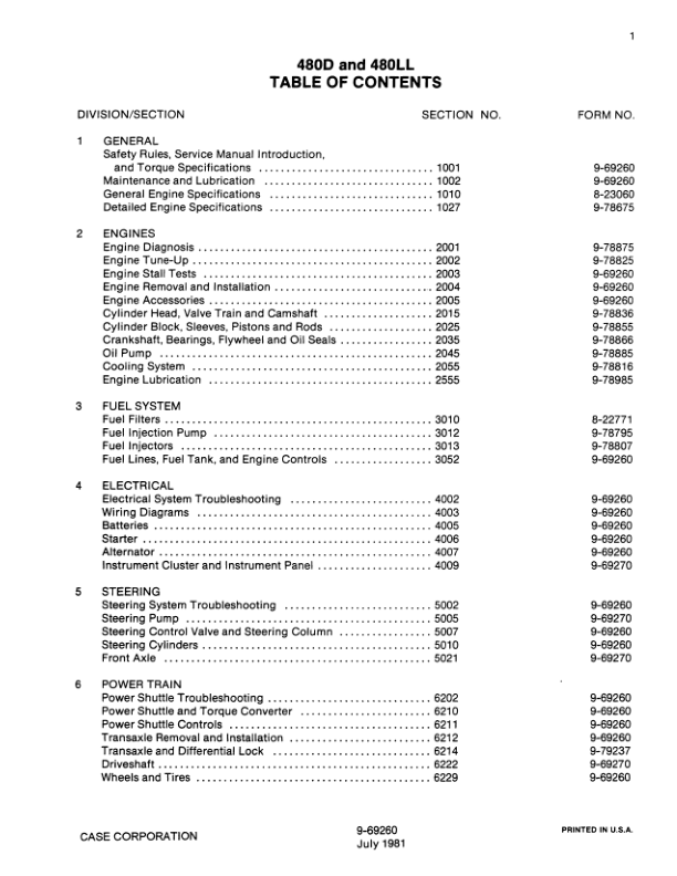 CASE 480D 480LL Backhoe Loader Service Manual