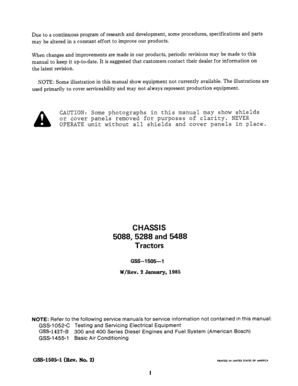 CASE 5088 5288 5488 Tractors Service Manual GSS-1505-1