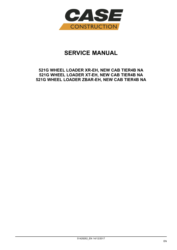 CASE 521G Tier 4B Wheel Loader Service Manual 51428262
