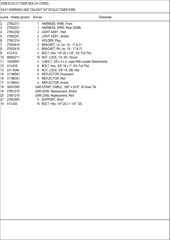 CASE 530B Ecolo-Tiger Mulch Chisel Parts Catalog